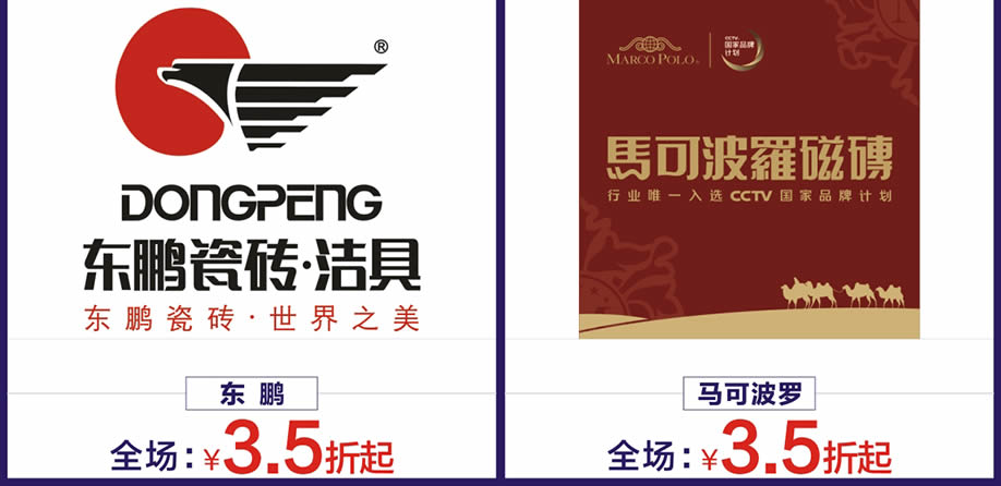 建材:木地板:安心地板、嘉森地板、贝亚克青花瓷地板、光益地板、卡思摩地板 陶瓷:通利、特地陶瓷、马可波罗、东鹏、楼兰、玛缇陶瓷 卫浴洁具:TOTO、科勒、美标、华艺、摩恩、雅阁、老铜匠、诺陶 硅藻泥:佰藻源硅藻泥、蓝天豚硅藻泥、万磊硅藻泥 涂料:芬琳漆、吉纳思意大利艺术涂料、连年家居、卡百利艺术涂料、玛蒂耐特、德麦森 灯饰:欧普照明、欧普水晶灯、三雄极光 门窗:汉幕斯门窗、盼盼安全门、王力安全门、奥缔奥木门、环球金门、德通木门 吊顶:世纪豪门吊顶、奥普吊顶 窗帘:南方布艺、欧虞沙布艺、奥雅窗帘 电器:日立、德意电器、老板电器、美的电器、火星人集成灶 其它:纳格影音、洛华背景墙、3M净水器、丰胜花园木、晾霸晾衣架、潜水艇五金