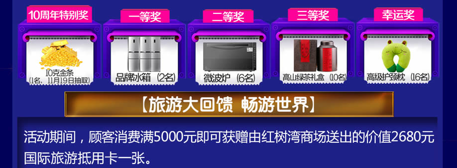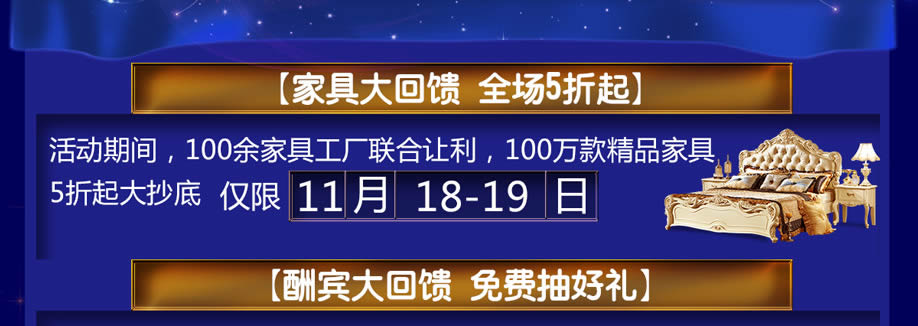 活动介绍: 11月18-19日红树湾荔湾店10周年庆典,感恩回馈大酬宾举办【家具半价日】大型促销活动!本次活动,100家工厂联合让利,100万款精品家具5折起大抄底!仅此2天!价格一降到底!活动到场可享受多重优惠!来购物即可畅享家具最底价!活动期间:①无需购物,免费抽记忆枕等好礼;②消费满额抽红包赢家电等豪礼;③消费满额还可返现金!更有金条、冰箱、微波炉等豪礼疯狂抽!更多优惠环节尽在11月18-19日!快上实惠家报名参加活动吧!