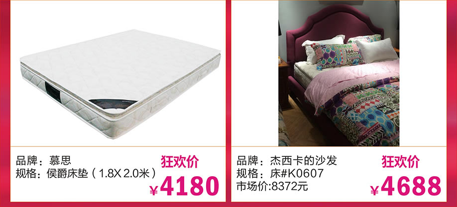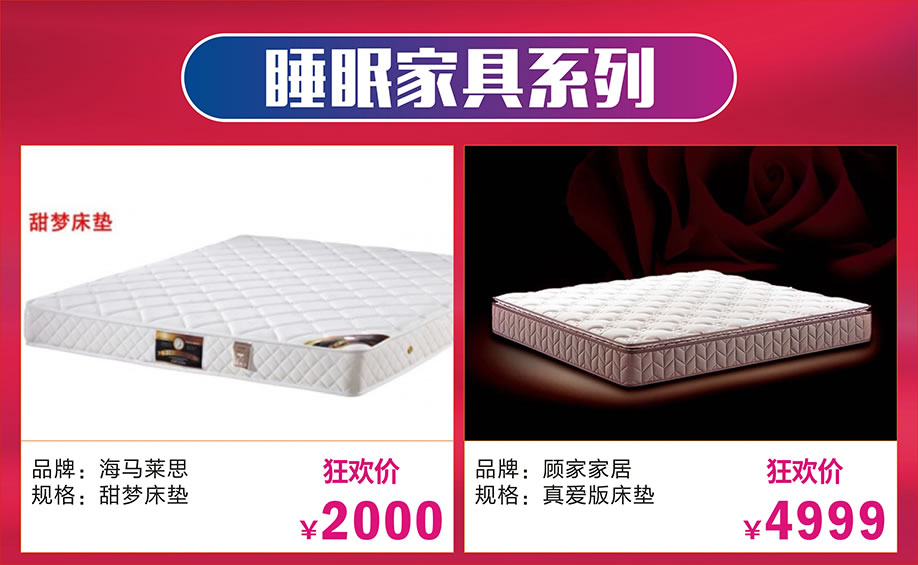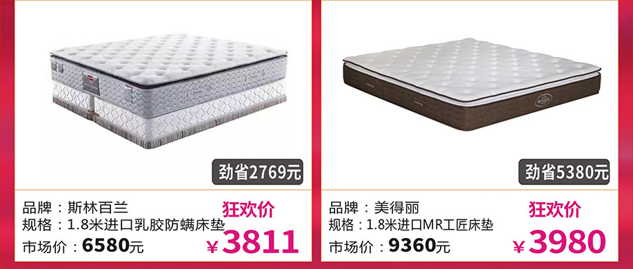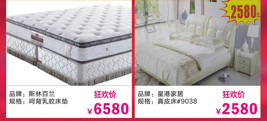 软体:慕思、斯林百兰、喜临门、圆方园、诗维戴尔、帝安尼、海马莱思、卓恩、金蒂雷丝、香江智能、大自然、金海马、斯可馨、顾家、美得丽、西娅图、欧迪朗、穗宝、美梦思、晚安、梦洁、星港、福满园