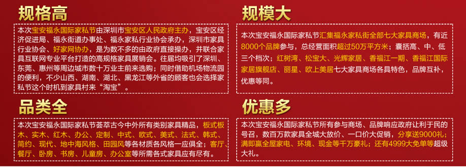 活动地址:深圳宝安区福永107国道怀德段-福永国际家具村七大商场全部参与