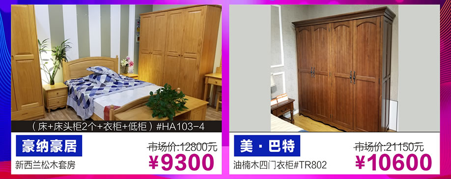 实木系列:盛世森林、北欧慕尚、广民、鼎宗名匠、美巴特、加州海岸、方圆歆、格瑞奇、东寅木业、琦澳柚木、沙隆家具、奥仕卡、亨德利、显尚优家、奉威居品、柚至臻、澳凡珀、卑格尔、豪纳豪居、鲁师傅、文晨松木、尚品铭家、千多多、欧度春天、欧意诺、飞雄家具