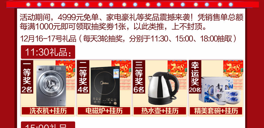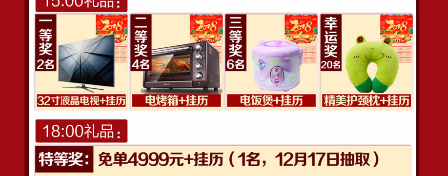 18:00-18:30 终极大奖,赢取4999元免单、家电豪礼、金条等