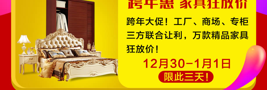 活动介绍: 12月30-元月1日,龙兴联泰国际家具举办【家具跨年惠】大型促销活动,跨年狂欢,限此3天!100余工厂总部让利齐贺!万款精品家具底价特供!工厂、商场、专柜三方联合开仓让利,全场大让利!活动三天:抽红包赢50寸液晶、冰箱、现金等豪礼大礼!还可抽4999元免单、洗衣机、空气净化器等大奖!多重优惠尽在龙兴联泰国际家具【家具跨年惠】,惠利满满,惊喜不断!快上实惠家报名尊享活动优惠吧!