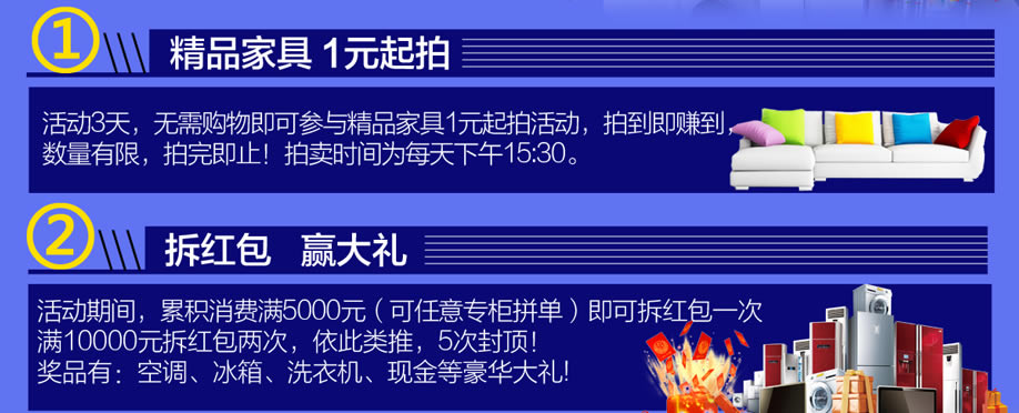 活动介绍: 年终感恩回馈!家具跨年钜惠,邀您来购!12月30日-1月1日,红树湾中山大道东店举办【跨年价·战便宜】年终大促大型优惠活动!600家工厂联袂支持,600万件家具齐放价,全场0利直供,超值优惠,不去都觉得亏!活动期间,还有惊喜豪礼等您来拿!空调、冰箱、洗衣机,微波炉,现金等等家电大礼抽抽抽!12月30日-1月1日,红树湾中山大道东店邀请与您一起来跨年啦!心动就上实惠家报名参加活动吧!