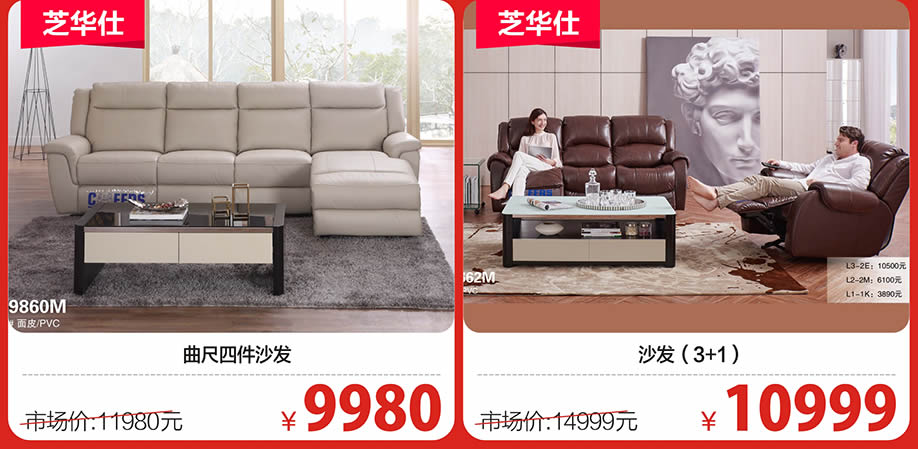 沙发:芝华仕、尚图、海马依家、恩斯威、斯米达、可可茜里、富牌沙发