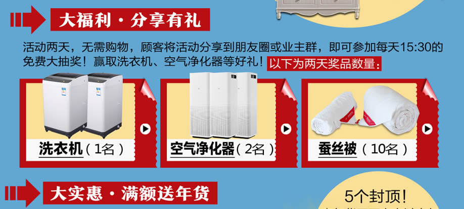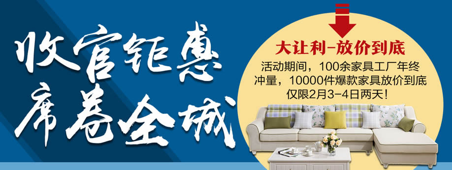活动介绍: 家具来放价,钜惠迎新春!2月3-4日红树湾从化店携手实惠家联手举办【家具0利收官大作】大型家具优惠促销活动!100余家具工厂年终冲量,10000件爆款家具放价到底!活动期间,实付满额拆红包赢现金好礼!满额砸金蛋送年货,开开心心过大年!更有4999元免单、电冰箱等大奖抽抽抽!满场豪礼,尽在2月3-4日!您还在等什么?快来实惠家报名参加活动吧!