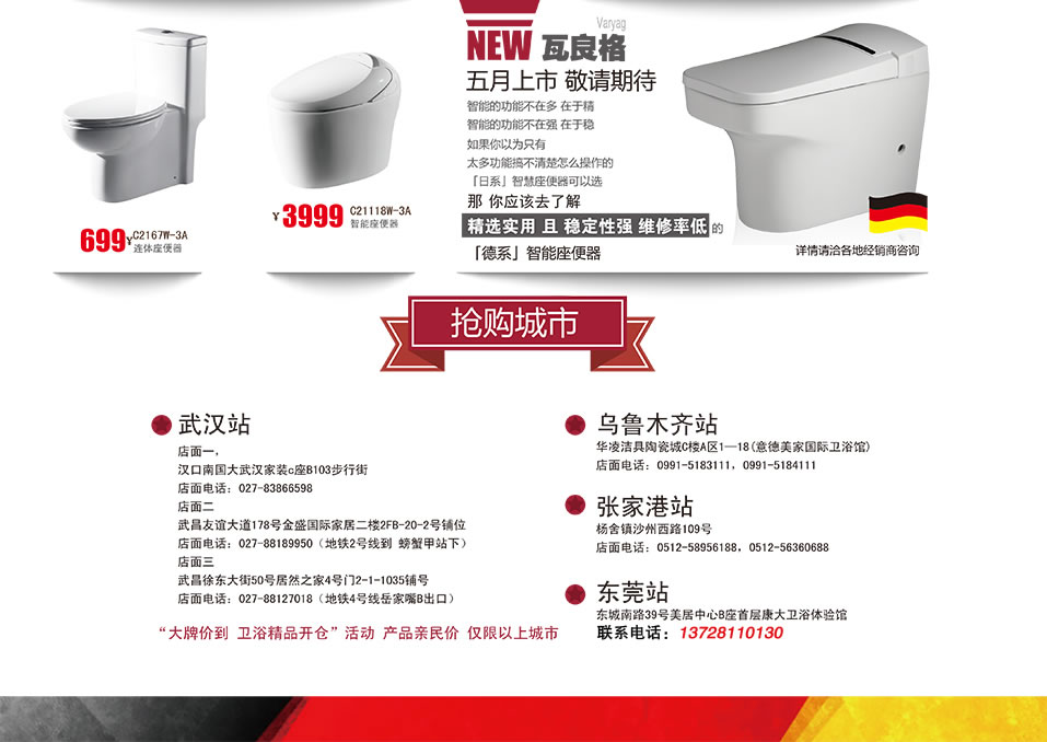 活动地址:东莞市东城南路39号美居中心康大建材城贝朗卫浴工厂直销展厅