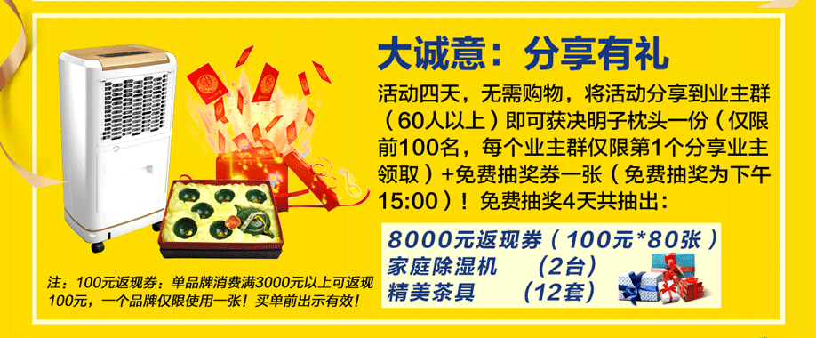特别提示:应举办方规定,实惠家是本次活动指定报名登记渠道,所有参与业主须在本页面(上方左侧或下方图标)报名,报名登记成功方可享受活动的所有优惠环节,活动前会有客服致电告之详情。如对报名成功与否有疑问,可致电020-32038939查询→。