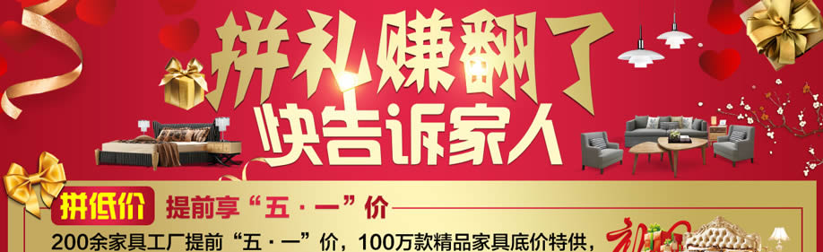 活动介绍: 4月21-22日光辉家居万江店联合实惠家举办【家具火拼日】大型家具促销活动!200余家具工厂提前“五·一”价,100万款精品家具底价特供!预售爆款优惠立减,满额送2000件好礼,买满1000元就有机会赢旅游券、家电4件套...多重钜惠等你来享!买家具,上实惠家报名,把握机会赚、赢、省!好机会不容错过!