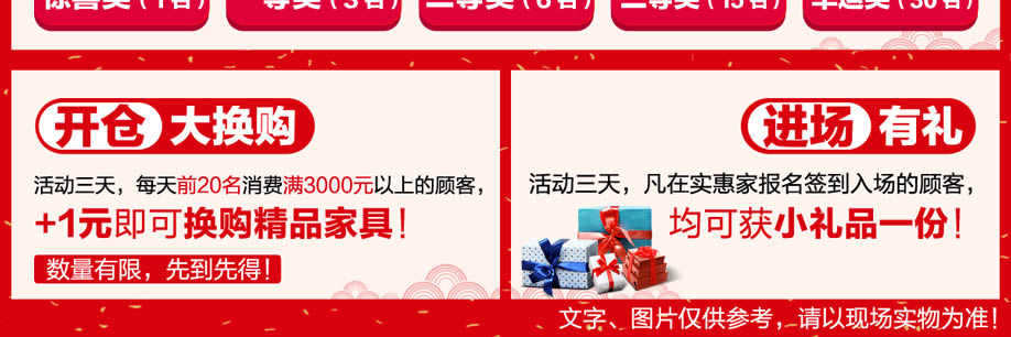 活动介绍: 开春大礼,让你整个春天喜气洋洋!4月5-7号光辉家居南岗店【家具开仓盛典】,火爆来袭!由光辉家居集团总部操盘,上百家工厂大让利,上万件家具一降到底!活动期间,到场即有机会参与抢爆款/送家电/返现金/抽大奖等豪礼的惊喜活动!聚优惠,聚划算!更多惊喜,到场揭晓!赶紧上实惠家报名参加活动吧!