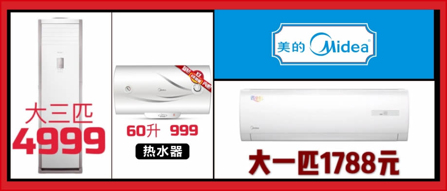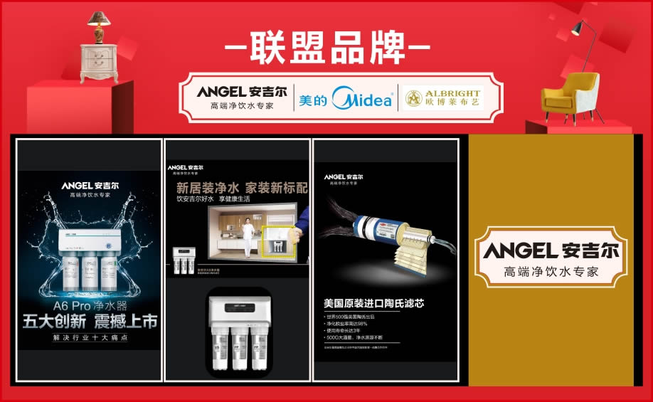 建材:美的、白璧无缝墙布、灯无忧、晾霸、联合利华净水宝、