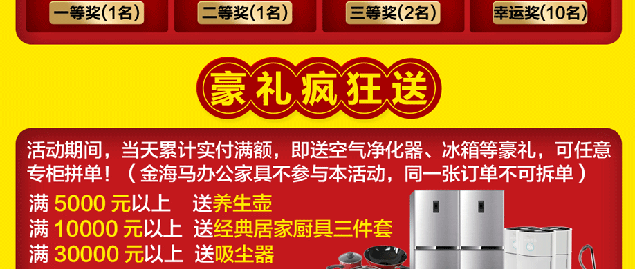 活动介绍: 五月大放送!5月19-20日金海马家居黄埔大道店联合实惠家举办【 厂价大决战 家具疯狂购】大型促销活动!100多家总部工厂联合大让利,10000件爆款家具厂价开抢,底价来袭!钜惠来袭,惠利到家,惊喜联合放送!活动期间,分享有好礼,狂抽“巴厘岛浪漫之旅”、1000元现金等豪礼!实付满就送空气净化器、冰箱等家电豪礼!满满惠利,满满惊喜!尽在5月19-20日金海马家居黄埔大道店!您还在等什么?赶紧上实惠家报名参与活动吧!