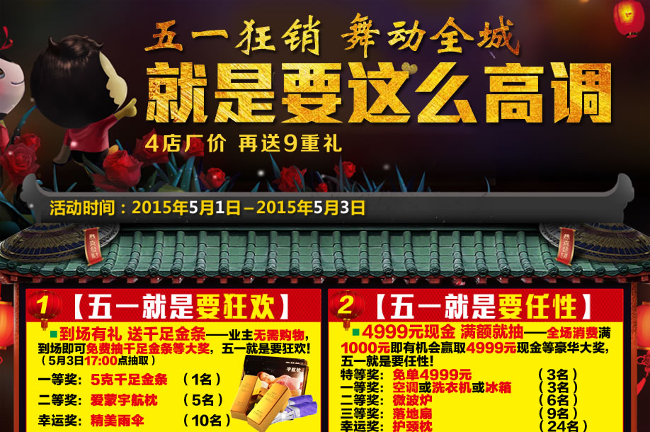 活动时间:5月1-3日(仅限五一假期3天)9:30-21:30