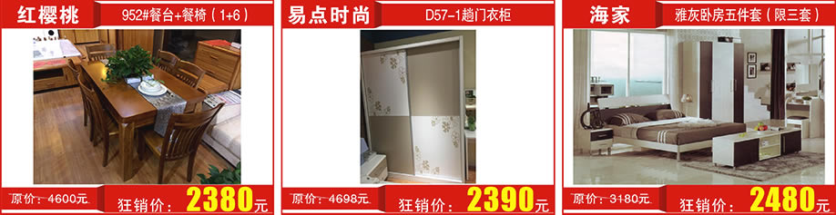 板式家具:丹迪、新南天、易点时尚、简欧、乐美居、和风布厘思、都市经典、红樱桃、海家、华日明珠