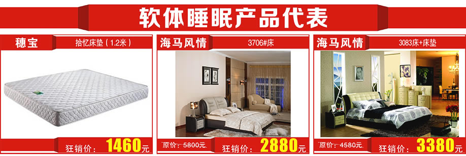 睡眠用品:爱蒙、雅兰床垫、穗宝、海马风情、卡路福、自然梦棕垫