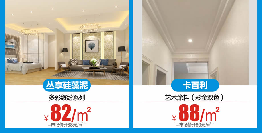 涂料:芬琳漆/吉纳思意大利艺术涂料/连年家居/卡百利艺术涂料/德麦森贝壳粉/绿芙莱墙基布/菲玛涂料