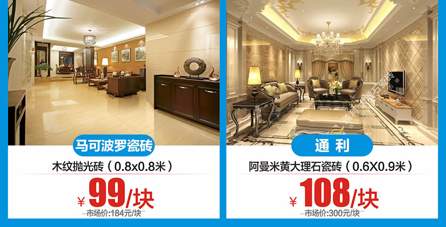 瓷砖:通利瓷砖/特地瓷砖/马可波罗瓷砖/东鹏瓷砖/楼兰瓷砖/玛缇瓷砖/道格拉斯瓷砖/陶元帅瓷砖