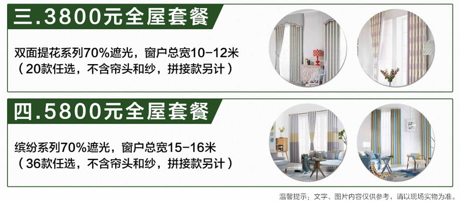 活动介绍: 装饰你的家,莫负彼此年华,“帘”动大促,精美窗帘装饰邀您参与选购!5月26-27日凡思亚布艺·好家网会员店【窗帘布艺 超值特惠专场】促销活动,邀您前来!产品涵盖窗帘、墙布、床品!免费量尺、线上选款、进店体验、免费安装,简单4步,为咱家的房子穿新衣。从工厂到家庭,全包套米计价。标准化、流程化,拒绝猫腻、谢绝烦琐。让选窗帘像买衣服一样简单!窗帘全屋套餐惊喜价!到店即可享受高品质爆款!还在等什么?好家网报名参与活动,锁定优惠吧!