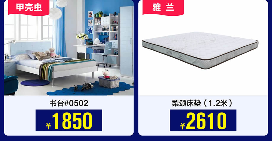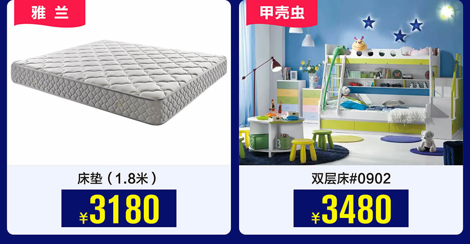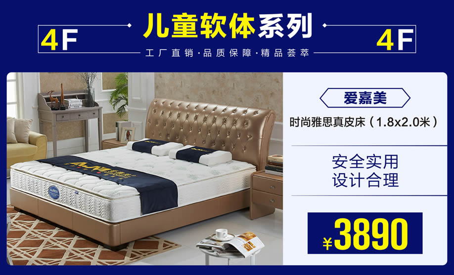 四楼:儿童家具馆、彩色套房系列、床垫、软床系列、睡眠中心