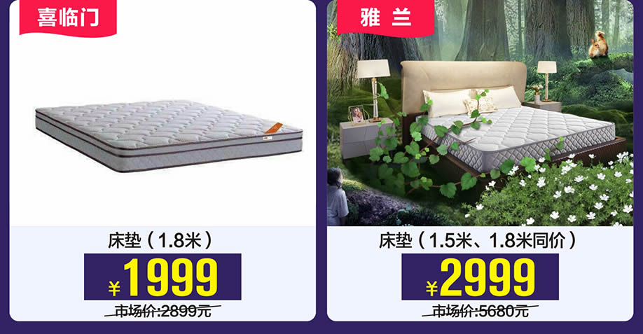 软床:穗宝、艾蒂思家、眠之韵、诗维戴尔、雅兰、大自然、美得丽、菲尔、慕思3D、奥斯丽诗、 海马莱思、喜临门、海马风情、芝华仕五星床垫、海马情缘、斯林百兰