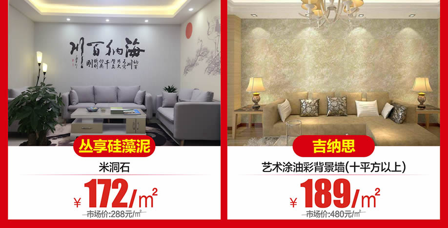 涂料:芬琳漆/吉纳思意大利艺术涂料/连年家居/卡百利艺术涂料/德麦森贝壳粉/绿芙莱墙基布/菲玛涂料
