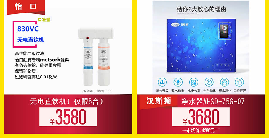电器:怡口净水器、三菱空调、好太太晾衣架、欧瑞博智能家居、安吉尔净水器、云米智能家居、纽恩泰空气能、汉斯顿净水器