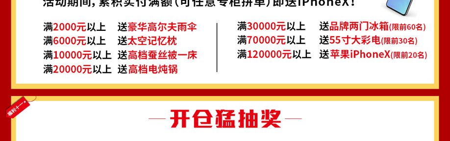 活动介绍: 11月10-11日,光辉家居南岗店【家具工厂开仓日】,500家工厂总裁亲笔签约定价,首次联合决战11·11,至少省20-60%,全场开仓抄底,明码实价,买贵,100倍退差!活动期间,千张通行卡限量抢购,享受特权;下定再送iPhoneX、55寸大彩电等豪礼;还可砸金蛋,赢至多4999元现金;更有60寸大彩电现场抽取;500台智能暖风机免费领!聚优惠,聚划算!更多惊喜,到场揭晓!赶紧报名参加活动享受优惠啦!