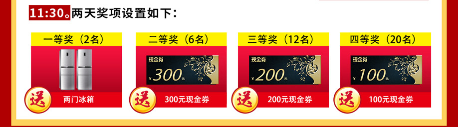 11:30-12:00 两门冰箱、现金抵金券疯狂抽