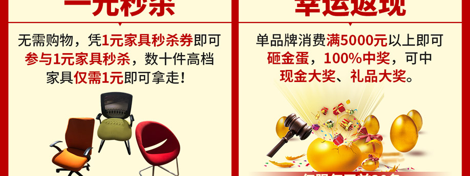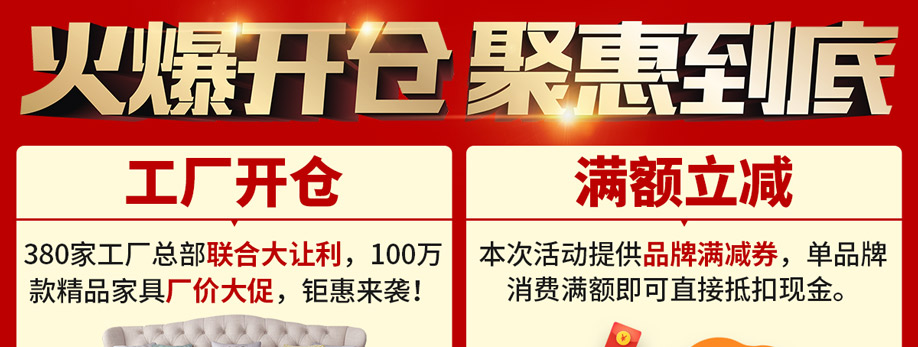 活动介绍: 5月1-3日,恒锋家具【工厂开仓 免单三天】活动,将在东莞厚街隆重举行!活动期间: 1、工厂开仓:100万款精品家具厂价大促; 2、特权专享:30元购卡,到场即享特权; 3、免费抽奖:参与互动即有机会赢取现金、落地扇等; 4、豪礼派送:消费满额即送对开门冰箱/55寸液晶/三门冰箱… 5、幸运返现:满额即可返至多888元现金 6、免单大奖:天天抽免单4999元现金; 更多优惠,请报名亲临现场了解!