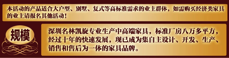 深圳名林凯旋投资有限公司是一家专业生产中高端家具的企业,标准厂房80000多平方,先后从德国、意大利引进先进生产设备和生产技术,聘用资深管理人才,经过十年的快速发展,现已成为集家具自主设计、开发、生产、销售和售后服务为一体的企业。了解更多,请点击官网>>>www.merrykexun.com/