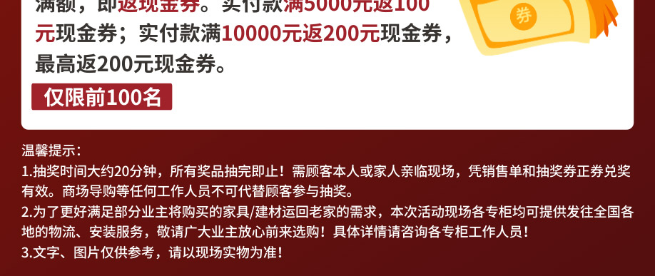 特别提示:应举办方规定,实惠家是本次活动指定报名登记渠道,所有参与业主须在本页面(上方左侧或下方图标)报名,报名登记成功方可享受活动的所有优惠环节,活动前会有客服致电告之详情。如对报名成功与否有疑问,可致电020-32038939查询→。