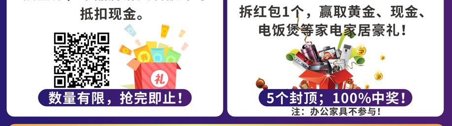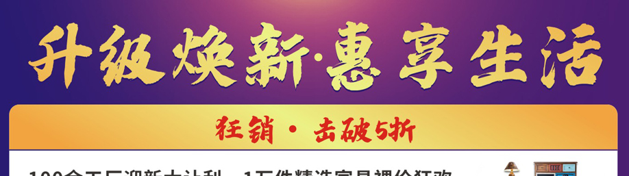 活动介绍: 家具裸价狂销啦!7月13-14日,阳光365家具广场携手实惠家举办【全新升级 超级放价】大型家具促销活动。100余家具工厂同贺商场全面升级,1万件精选家具裸价狂欢!活动期间:满额立减!满额拆红包,赢取黄金!还可参与惊喜大抽奖,将清凉家电三件套拿回家!超值环节,多重惊喜好礼尽在阳光365家具广场,马上报名参与活动吧!