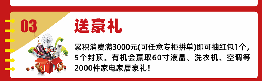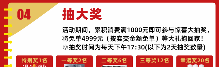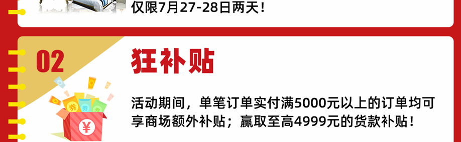 活动介绍: 7月27-28日红树湾番禺大道店【家具爆抢日 火力全开】狂欢两天!百余家具工厂年中冲量,万款精选家具厂价直供!活动期间,单笔满额至高补贴4999元!累积消费满额即可拆红包,赢取60寸液晶、洗衣机、空调等家电家居豪礼!另可参与免单4999元终极大抽奖!每天前10名累积消费满2万再送六福黄金一份!更多福利,尽在活动现场,赶紧报名参与吧!