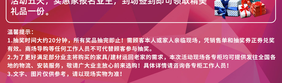 特别提示:应举办方规定,实惠家是本次活动指定报名登记渠道,所有参与业主须在本页面(上方左侧或下方图标)报名,报名登记成功方可享受活动的所有优惠环节,活动前会有客服致电告之详情。如对报名成功与否有疑问,可致电020-32038939查询→。