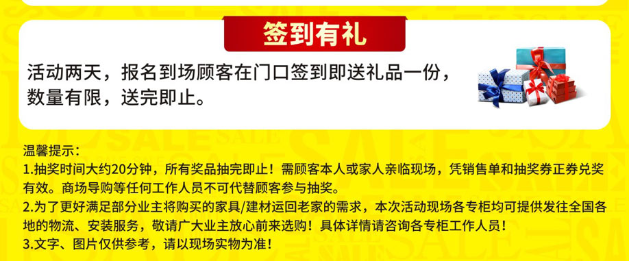 特别提示:应举办方规定,实惠家是本次活动指定报名登记渠道,所有参与业主须在本页面(上方左侧或下方图标)报名,报名登记成功方可享受活动的所有优惠环节,活动前会有客服致电告之详情。如对报名成功与否有疑问,可致电020-32038939查询→。
