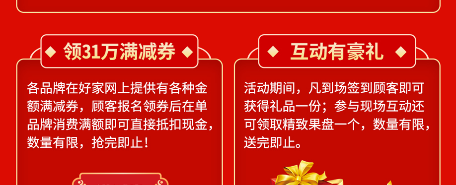 特别提示:应举办方规定,实惠家是本次活动指定报名登记渠道,所有参与业主须在本页面(上方左侧或下方图标)报名,报名登记成功方可享受活动的所有优惠环节,活动前会有客服致电告之详情。如对报名成功与否有疑问,可致电020-32038939查询→。
