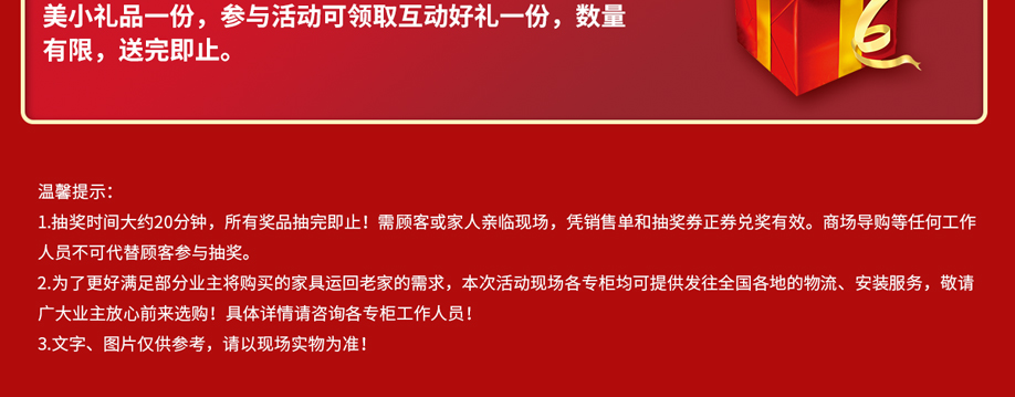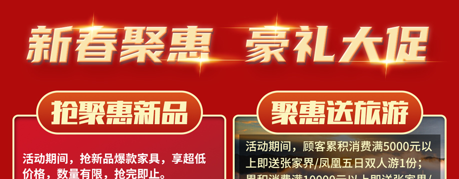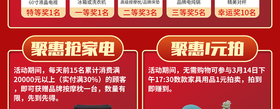 活动介绍: 3月13-14日红树湾中山大道东店携手实惠家举办【新春聚惠 家具开门红】大型促销活动,抢5万新品爆款,派50万元返现,送5000件家电豪礼,再抽惊喜大奖!更多活动优惠,请赶紧报名亲临现场了解吧!