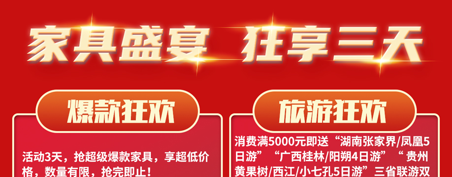 活动介绍: 7月16-18日红树湾中山大道东店携手实惠家举办【家具狂欢大促】大型促销活动,抢超级爆款,派100万元返现,送5000件家电豪礼,再抽免单4999!更多活动优惠,请赶紧报名亲临现场了解吧!