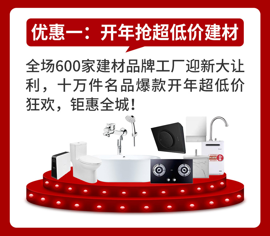 活动介绍: 2022年建材开年大促,600家品牌工厂迎新大让利,超低价,满立减,千件礼,抽大奖,仅限2022年2月-3月每个周六日,活动地址:活动前优选出本城市适合的建材卖场再行公布。