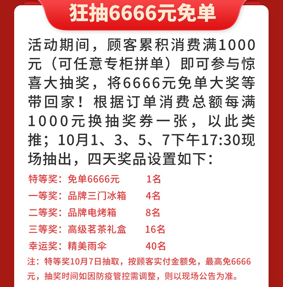 活动时间:10月1-7日(限此7天)10:00-20:00