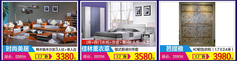 板式家具:健威/迪诺雅/时尚美居/今日美家/奈菲/钻石年华/华伟/威达/健邦/大恒家具/金品居/橄榄树之梦/ 优博家具/莫斯奇诺/佳林薰衣草/骏豪客厅家具:芝华仕/卡斯蒂雅/维伦堡/帝梵尼/乐家诺/雅韵莱/汉皇/唐古轩/圣美轩睡眠家具:海马莱思/穗宝/菲尓/大自然/海马家具/MBA/伊夫罗兰/皇家.爱慕 实木家具:康帝星/尚木/裕丰/春晓/小康人家/ 佳林金柚木/缘木居/天缘皇宫/松木堡/伟业/顺百年/卓木源/齐林居/钰福红木家具:大森林/和悦/明雅堂/嘉华/雍韵居/日日红/晟辉/今典居/儒艺轩/日月居/鸿福堂/檀典居/新中正儿童家具:有爱有家/松林宝贝欧式/韩式家具:金华庭/芭黎玫瑰/富玛/格莱维/茉莉花香 订制家具:帝亚衣柜/柏林定制/芭提雅/永恒其他:金富来鞋柜/杨峰户外/雅兰地毯/智雅画廊 / 雍派办公/A家水族/金淘船木/华翰斋/堂中宝