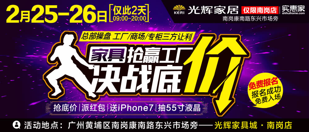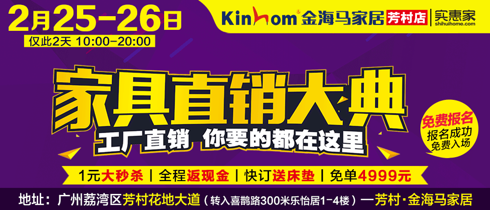 地址:广州黄埔区南岗康南路东兴市场旁—光辉家具城·南岗店