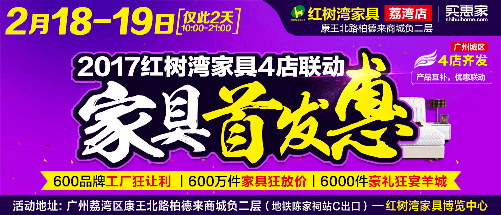 地址:广州市荔湾区康王北路柏德来商城负二层--红树湾家具(地铁陈家祠站C出口)