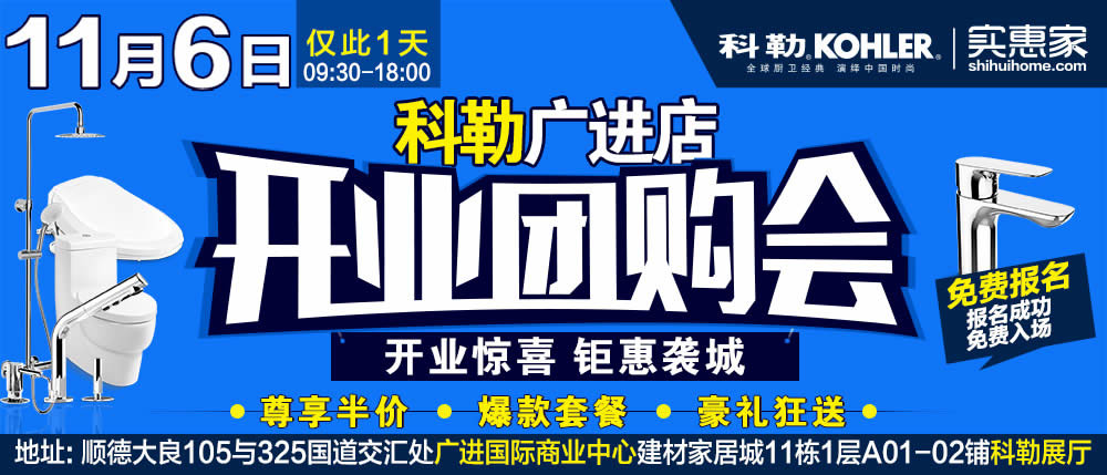地址:佛山市顺德大良105与325国道交汇处广进国际商业中心建材家居城11栋1层A01-02铺—科勒展厅