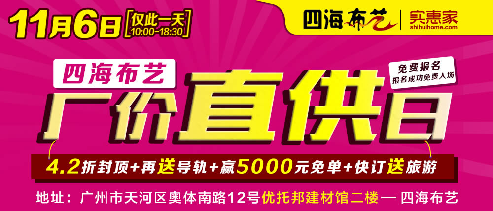 地址:广州市天河区奥体南路12号优托邦建材馆二楼四海布艺