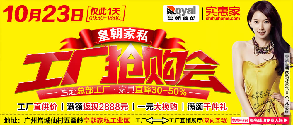 地址:广州市增城仙村五叠岭皇朝家私工业区工厂←→工厂直销展厅双向互动