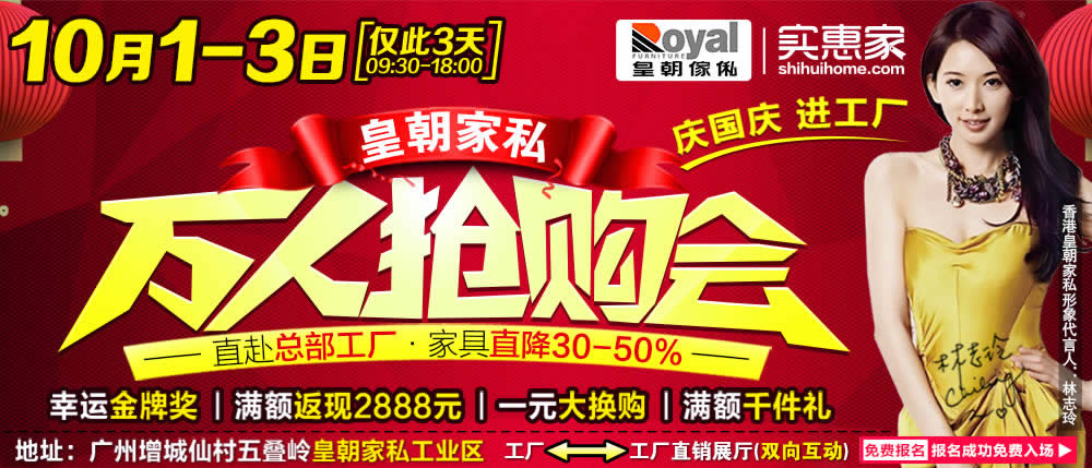 地址:广州市增城仙村五叠岭皇朝家私工业区工厂←→工厂直销展厅双向互动
