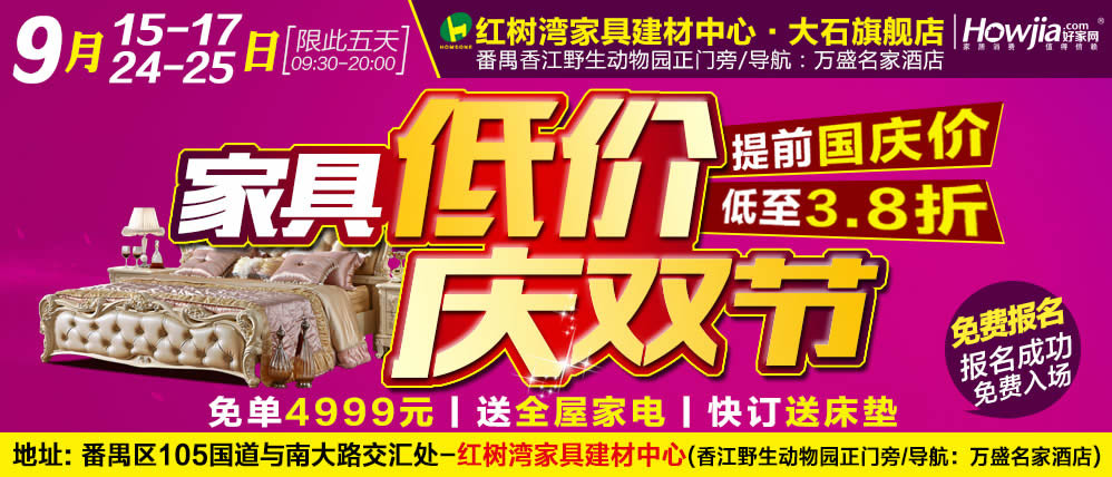 地址:番禺区105国道与南大路交汇处-红树湾家具建材中心(香江野生动物园正门旁/导航:万盛名家酒店)