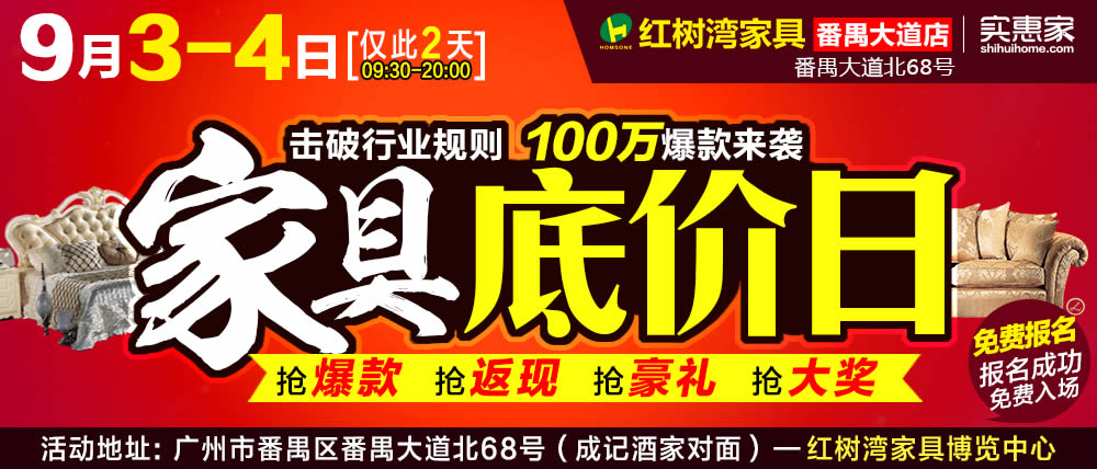 地址:广州市番禺区番禺大道北68号/成记酒家对面-红树湾家具博览中心