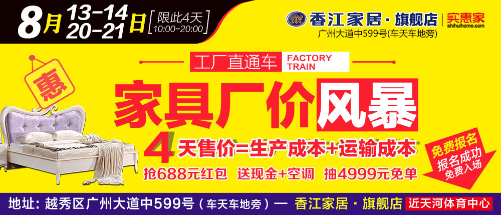 地址:广州市越秀区广州大道中599号-香江家居旗舰店(车天车地旁,广州大道中公交站)